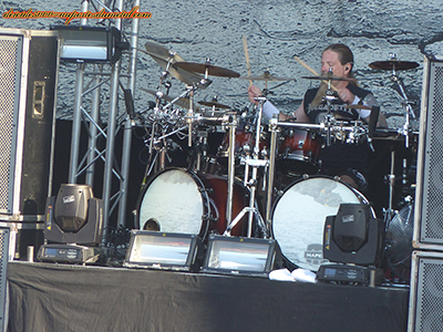 Mais je ne suis pas au bout de mes bonnes surprises du vendredi, car sur la Mainstage 2, c’est au tour de Godsmack d’attaquer son set. J’avoue que je me suis penché sur ce groupe une semaine avant le Hellfest quand mon interview a été confirmée. Avant ça, je ne connaissais absolument pas. Et pourtant, en faisant quelques recherches, je découvrais que le groupe avait vendu 20 millions d’albums et qu’aux US, ce sont des méga stars. Et bien je le dis de suite, j’ai adoré leur set super efficace. Le son est génial, les mecs sont de super pros. Ils ont balancé For Those About To Rock en intro, puis envoyé le single de leur dernier album, 10000hp. Ca envoie bien les watts. Le chanteur tente de faire chanter la foule mais sans trop nous préparer, et c’est un peu un fiasco, en plus il tentait de nous faire chanter des trucs assez compliqué. Raté. On crie quand même, on n’est pas des ingrats, et on organise même un circle pit à la fin du set, sympa. Le batteur est une pile atomique, le bassiste est excellent (ça sera d’ailleurs lui que j’interviewerai un peu plus tard dans la journée). Certains gros riffs rappellent un peu Metallica (ils ont d’ailleurs tourné pas mal avec eux), ça groove un max, on prend notre pied ce qui n’est évident pas toujours le cas avec un groupe dont on ne connait pas les albums (en tout cas, c’est mon cas). C’est la surprise du jour pour moi.
