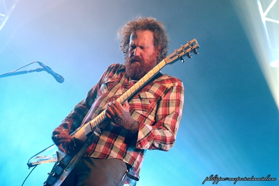 La foule, qui déborde largement de the Valley, explose sur Blasteroid (The Hunter) et ça commence à bouger grave devant la scène : les stage diving s'enchaînent, la sécurité est sur la brèche. Mastodon repart sur une série de titres tirés de Once More' Round The Sun (trois). Roulement de toms et c'est tout d'abord The Motherload et son refrain fédérateur chanté divinement par Brann Dailor, car jouer de la batterie et chanter en lead, c'est compliqué ; mais le bougre s'en sort plus que bien. Le solo de Brent Hinds y est superbe. Puis le divin et dantesque Chimes At Midnight, avec ce psychopathe de Troy Sanders au chant : un grand moment de communion le public qui est en transe et ne fait qu'un avec le groupe ! Troy choisit la fin de ce titre pour enfin nous parler et nous remercier. High Road finit la série, puis suit le dément Aqua Dementia avec les deux guitaristes Brent Hinds et Bill Kelliher en avant. Brent Hinds au chant fout la chair de poule ! Ce brûlot porte bien son nom et, tout comme les musiciens de Mastodon, le public est pris de démence ! Une petite intro guitaristique et voici le dispensable Halloween ; cette compo, la dernière tirée de Once More 'Round The Sun, n'est pas terrible. Pas grave, Mastodon va se rattraper avec Bladecatcher (Blood Mountain) ; ce titre quasi instrumental est une tuerie et il sera enchaîné avec Black Tongue tout aussi dément. C'est de la folie sous The Valley. Les gars d'Atlanta ne nous donnent pas de répit et ils enchaînent avec Megalodon, un titre de leur album culte Leviathan. Troy est en transe ! Le concert se termine avec Crystal Skull, un morceau de Blood Mountain, mon album prèféré de Mastodon ; que demande le peuple ?