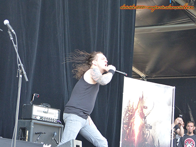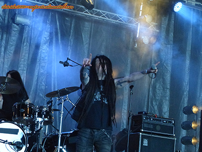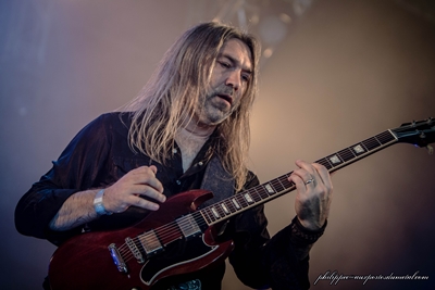 Je suis un fan de Paradise Lost de la première heure et admiratif de Gregor Makintosh, leur légendaire guitariste gaucher. J’ai découvert cependant tardivement ce qu’il faisait avec Vallenfyre en tant que chanteur. Il a bien caché son secret, le bougre. Quelle voix d’outre tombe ! A se demander pourquoi ce n’est pas lui qui chante sur les premiers Paradise Lost car il n’a pas grand-chose à envier à Nick Holmes. J’étais très intrigué par sa performance. Et je le suis encore plusieurs jours après. Le doux et effacé Gregor de Paradise Lost laisse place, plusieurs années de maturation plus tard, à un sauvage revendicatif aux dreadlocks luisantes. Faut aimer…. La musique n’est pas aussi soignée que PL et est bien plus rentre-dedans. Le show est sympa mais je ne sais pas pourquoi, j’ai plus l’impression de voir des musiciens accompagner un chanteur qu’un vrai groupe.