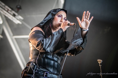 Après une petite promenade sur le site, je me trouve sous The temple pour y voir le groupe de funeral doom finlandais Shape Of Despair. C'est dans une The Temple bien remplie qu'entre le groupe. La chanteuse (Natalie Koskinen) qui porte une cape noire avec une capuche qui lui couvre la tête a des airs de grande prêtresse. Pendant les parties musicales, on la trouve à la droite de batterie, puis devant pour ses parties chantées. Le deuxième vocaliste (Henri Koivula), lui, reste devant. Tous les deux sont très statiques, il faut dire que leur musique très lente et pesante ne se prête pas trop au mouvement. Le concert prend des allures de messe funéraire, le noir est de mise, la tristesse aussi mais le public est bien présent et réceptif à la musique de Shape Of Despair. N'étant pas spécialement fan de leur style, je décroche bien vite mais les Finlandais, servis par un très bon son, ont ravi leurs fans et c'est l'essentiel. Le public, qui a eu droit à un petit "merci" de la part du chanteur en fin de set, sort content.