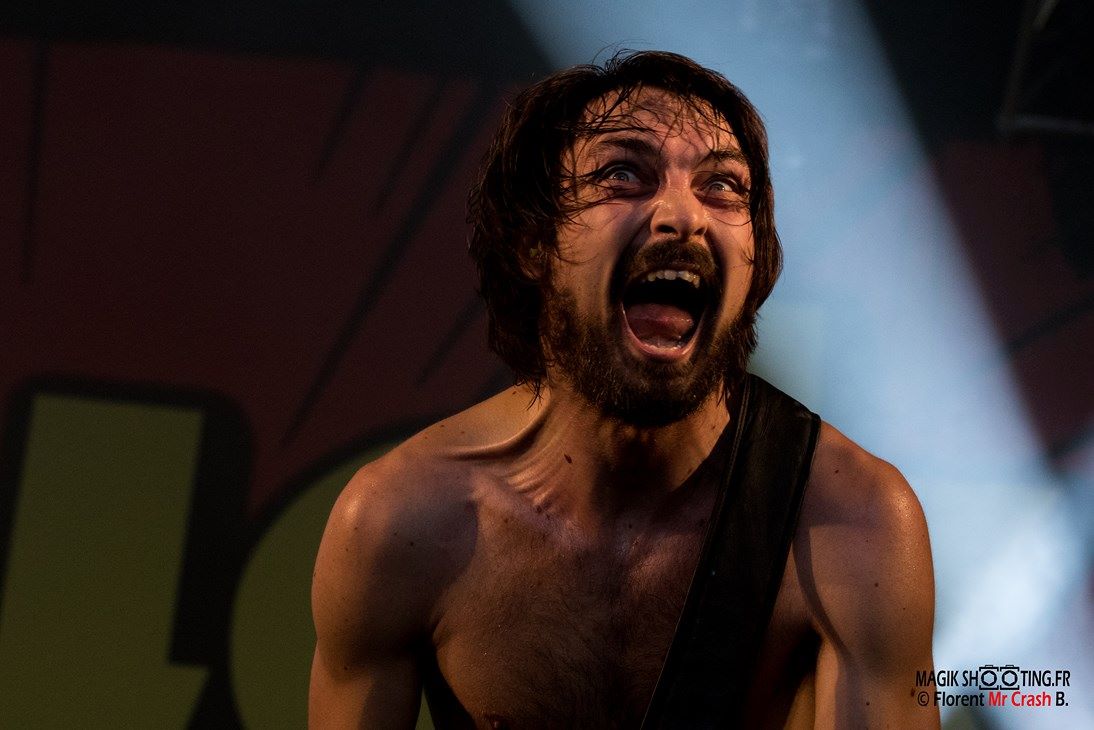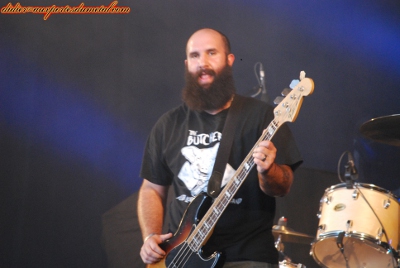 Les trois boys sont super souriants, ravis d’être là. Ils balancent leur hard rock punkisant, simple et rudement efficace. JB secoue sa vieille basse, et assure avec Tom les chœurs, derrière un Alex survolté. Ils sont bien en place et profitent de leur court set pour nous balancer un max d’hymnes qui font bouger la tête et le pied. La foule est déjà nombreuse, et je suis bien content pour eux. C’est vraiment un festival où les gens viennent avant tout pour la musique, je ne comprends pas trop les groupes qui refusent de passer trop tôt dans la journée. D’ailleurs, Alex explique avant leur dernier titre qu’on l’avait prévenu que jouer sur la Mainstage du Hellfest « faisait pousser les couilles », et il confirme. Ils terminent par une reprise de Surfing USA, devant un bon public totalement acquis à leur cause. On ne pouvait pas rêver meilleur entame de festival. Merci les Boys !