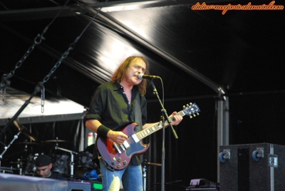 Et zou, encore un aller-retour avec la Mainstage 1, pour aller voir les Quireboys. Je connaissais bien les Quireboys, vus une fois en tête d’affiche et dans mon verre au très select Moods à Monaco, et une autre fois en première partie de Saxon, au mythique O2 Shepherd's Bush Empire. C’est toujours un vrai plaisir de voir évoluer Spike (le chanteur avec son bandana sur la tête) et ses acolytes. Au Hellfest, sa voix proche de Rod Stewart peut surprendre (en tête d’affiche de Saxon aussi), pourtant, tout se passe à merveille. Je trouve que le son du honky tonky piano est un peu trop fort dans le mix, il couvre même par moment la voix. Le groupe est toujours au top avec autour de Spike, un piano, deux guitares, une basse, et une batterie. Spike parle beaucoup, surtout de boisson. Il faut dire que le soleil tape et que la bière coule déjà à flot dans les gosiers des festivaliers. Il sirote une bouteille d’eau et plaisante sur le fait que c’est la première fois qu’il en boit, avant de dire que c’est de la vodka. L’ambiance est très bonne, Spike nous fait même chanter des "Youha", comme si nous étions au fin fond du Texas. La superbe ballade I Don’t Love You Anymore, fait son petit effet, et ils terminent leur set par leur célèbre succès de 1989, 7 O’Clock, particulièrement festif, et dont l’intro permet à Spike de sortir son harmonica. Pas déçu de les avoir revus.