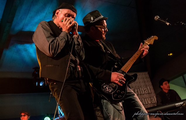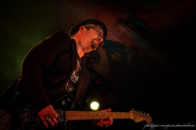 Vers 20 heures, c’est donc le second groupe de la soirée, Lake Shore Blues qui attaque en premier. Nous avions déjà parlé des LSB, lors de la précédente édition en première partie des King King, c’est Phil qui avait couvert la soirée. Ils sont cinq, extrêmement bien en place. On retrouve au chant et à la guitare, Cédric Puléo ; à ses côtés, Jo Harp à l’harmonica et derrière eux, Hervé Letrillard à la batterie, et Jack Blues à la basse et enfin le petit nouveau par rapport à l’année dernière, Bernard Charmoile dit 'Bern" aux claviers.