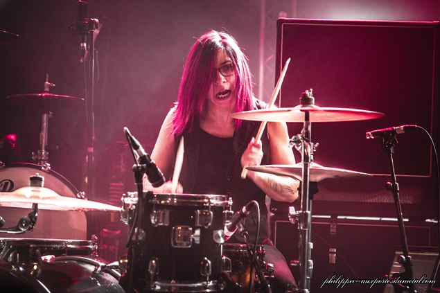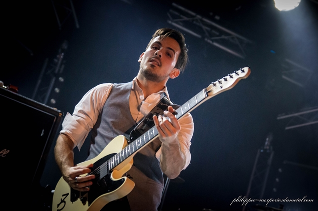 Vers 21h, les lumières s’éteignent. Les musiciens de Digital Nova font leur apparition. On peut dire qu’il ont soigné leur look. Les trois garçons sont en chemise, cravate et bretelles. Le chanteur (François Le Goazigo) en noir, les guitaristes (Mathieu Dubois, quatre cordes et Jean Baptiste Caysac, six cordes) en blanc. Et c’est un fille (Stayff Silmar) qui bat la mesure. Je ne connais pas le groupe, mais je suis agréablement surpris, c’est bien fait et leur style musical se situe entre Mass Hysteria et Rage Against The Machine. En plus, ils ont des passages plus atmosphériques que je trouve bien gaulés.