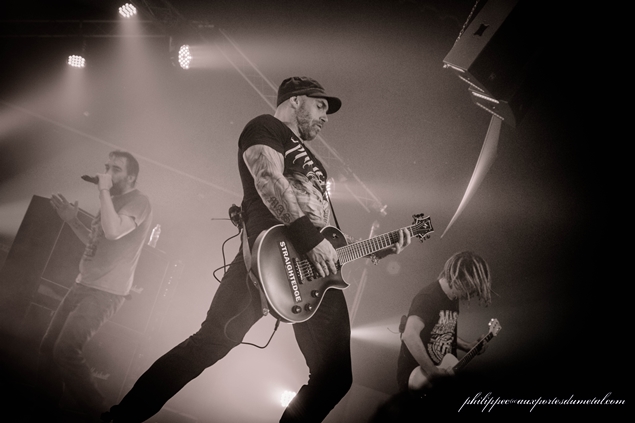François essaye de chauffer la salle un peu plus. Ca marche pas mal et ça commence même à pogoter vers la fin, quand il évoque la venue de Mass Hysteria et leur joie de jouer avant eux. Il se paye même un petit slam bien mérité. Ils s’arrêtent vers 21h45 et leur matos est évacué.