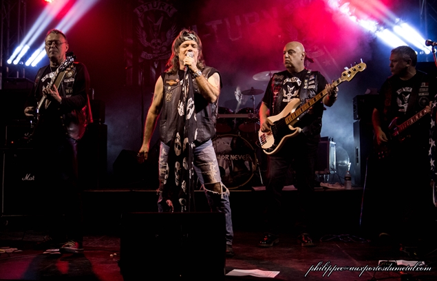C'est le tour de la tête d'affiche du soir, Now Or Never. Si le groupe n'a sorti que deux albums (Now Or Never en 2011 et II ce printemps 2016), les musiciens qui le composent sont des vétérans du Metal. Jo Amore, le chanteur, a officié dans Nightmare de 1980 à 1987 en tant que batteur puis de 1999 à 2015 en tant que vocaliste. C'est pendant ces quinze dernières années que Jo s'est révélé comme une des meilleures voix du Heavy Metal et a joué dans l'Europe entière ainsi qu'en Israël et aux Etats-Unis ! Ses copains aussi ont un bon C.V. Le bassiste Kenn Jackson et le guitariste Ricky Marx ont joué tous les deux dans le groupe danois Pretty Maids. Et pour finir, le batteur Pascal Ranzoni joue du metal depuis le début des années 80. Passons au concert...