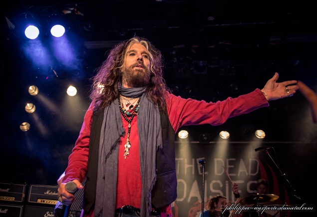 Le concert était annoncé comme un co-headlining des deux groupes, du coup The Answer a joué une bonne heure et quart. La scène est assez vite préparée, les amplis des deux groupes était déjà sur scène, il suffit d’éteindre les premiers et d’allumer les autres. Quand les américains de The Dead Daisies montent sur scène on voit de suite le changement de style. Exit la simplicité et le naturel de Cormac et ses acolytes, et bonjour la grosse artillerie : tatouages, cheveux bien arrangés, maquillages et poses avantageuses, on est bien là en présence d’un vrai groupe de hair metal, tout droit sorti des années 80. Il faut dire que les CV des musiciens en présence sont longs comme des jours sans pain.