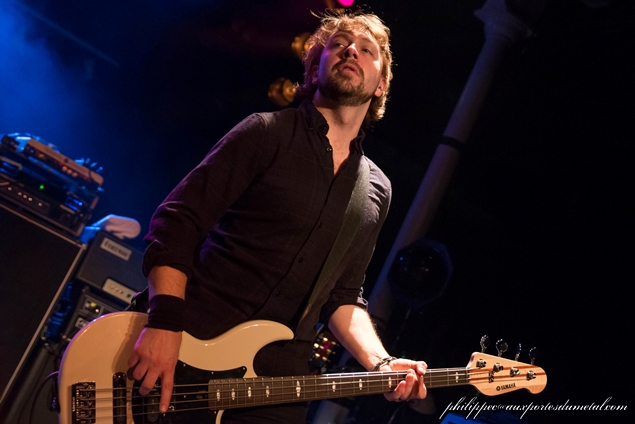 A côté de lui, Paul Mahon est toujours bigrement efficace avec sa LesPaul. A la basse, on retrouve Micky Waters, je remarque qu’il a changé son matériel pour une P-Bass Yamaha (au lieu de ses éternelles EPS noires). Derrière, c’est toujours James Heatley qui assure aux fûts. Il porte un casque la plupart du temps. Je ne sais pas s’il a les clicks dans son casque, mais ça me semble compliqué vu que souvent, ça n’est pas lui qui démarre le morceau. En tout cas il donne de sa personne et dégouline littéralement quand il s’agite.