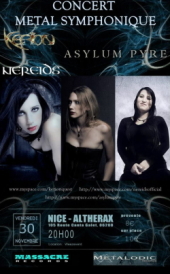 Il faudra attendre encore deux morceaux avant que Laura, bassiste apparaisse timidement sur le côté droit de la scène. Là, le son prend une autre dimension, son jeu plutôt sympa apporte le contraste qu'il manquait jusqu'à maintenant. Elle jouera sur les trois morceaux suivants avant de redisparaître le temps d'un morceau et de revenir pour les deux derniers. L'explication que nous aurons ensuite est qu'elle vient juste d'intégrer le groupe et ne pouvait encore pas assurer tous les morceaux. Gageons que ce soucis va rentrer dans l'ordre rapidement. Julie explique que le morceau Elevation a été écrit pour son grand père décédé. Elle relance la machine après ce moment mélancolique en nous gratifiant d'un : "Bon, on va pas non plus pleurer toute la soirée !". Elle a beaucoup d'humour. Entre les deux sets, nous discutons avec Bernie, le guitariste aux cheveux bleus et au look radical (je l'avais déjà vu au Vox lors du Guitar Universe Tour), il me donne une setlist et leur premier EP, on parle un peu musique et du manque de monde au concert. Il est super cool, il trouve que soixante-dix personnes c'est déjà pas mal, il est content d'être venu à Nice malgré tout. L'ambiance entre Nereids et Asylum Pyre a l'air aussi très bonne, ils plaisantent, s'encouragent et se chambrent pas mal. Nous avions également discuté avec Johann avant le début du set de Nereids. Il est aussi très sympa, il avait lu la chronique d'Ostianne de leur dernier album, que nous avions publiée la veille. Ils sont venus avec un carton de ce dernier opus qui sort début décembre. Les pauvres, vu le monde ils ne vont pas en vendre des tonnes. Johann et son team s'activent sur scène. On note de suite le présence d'un clavier, et on remarque aussi l'arrivé de Chaos Heidi la nouvelle chanteuse qui, étant grande et jolie, attire forcément le regard. Ils démarrent leur set assez tard, et on voit de suite que ça va envoyé du lourd. Le son est un ton au dessus de celui de Nereids, ça joue pas dans la même division.