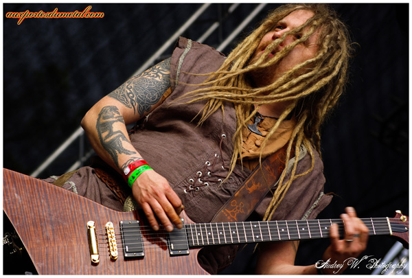 A Korpiklanni d'entamer son show. Encore une fois, ce groupe ne m'attire pas des masses. Une chose me dérange chez eux, mais j'en ai quand même profité pour les shooter et tendre une oreille. Plus festif tu meurs, les Finlandais savent mettre l'ambiance. Les Autrichiens sont regroupés en masse devant la Mainstage. Le show débute avec le titre « Vodka », c'est bien rentre dedans et ça nous montre la couleur du spectacle que va nous offrir le groupe. Le chanteur demandera quelle chanson le public veut entendre et bien sûr c'est la cultisme « Beer, Beer » qui sera réclamée. Ils la joueront quelques morceaux plus tard, envoyant des bières au public, buvant de la vodka à tout va, ce sont bien des Finlandais !! Petit bémol le violoniste est beaucoup trop en retrait par rapport au reste du groupe, bien qu'il joue sur chaque morceau, il reste trop figé.