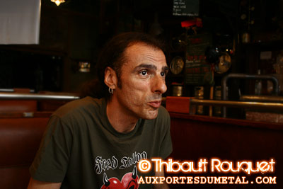 Interview Patrice GuersCela fait combien de temps que tu as rejoint Patrick Rondat ?Ca fait 15 ans justement. Ce sont des dates anniversaire pour tout le monde. Patrick, ça fait 20 ans que son premier album est sorti. Moi, ça fait 15 ans cette année, en mars, que je joue avec lui. Avec le batteur Dirk, ça fait 10 ans qu'on a joué ensemble pour la 1ère fois, on avait commencé avec le Consortium Project en 1999. Et ça fait 5 ans qu'on joue avec le clavier Manu. Des multiples de 5 pour tout le monde. Tu es le 3ème bassiste de Patrick après Fred Guillemet et Pascal Mulot. Est-ce que ça a été dur de succéder à Pascal Mulot ?La relève a été faite il y a 15 ans. C'était un gros truc. Même sans parler de relève, quand tu abordes la musique de Patrick, c'est déjà très technique. Il est connu pour jouer vite et beaucoup de plans sont à l'unison basse/guitare et il faut les suivre. Ca a été énormément de boulo au départ. Et le fait de passer derrière Pascal... J'ai énormément de respect pour Pascal, pour l'album qu'il a enregistré avec Patrick. Je le connaissais, je l'avais vu en masterclass, et c'est lui qui avait conseillé à Patrick d'essayer avec moi. Je lui dois beaucoup. "Lady Boy", l'instrumental que tu joues sur le live, ressemble beaucoup à ce Pascal faisait sur "Bass & Love", non ?Oui, c'est très axé slap, tapping. C'est vrai qu'on a ce point commun avec Patrick d'aimer ces techniques de basse. A l'époque, je ne considérais pas Pascal comme un bassiste de métal mais comme un bassiste de rock qui explorait vraiment l'instrument sur toutes ses facettes. Même si on a des jeux totalement différents, on a ce point commun d'aimer l'instrument dans sa globalité et pas que par rapport à un style musical. Que penses-tu du dernier album classique de Patrick enregistré avec Hervé ?Ce qui me plait dans ce contexte est que Patrick essaie de s'élargir, de faire des trucs qui lui plaisent. Mais c'est pas vraiment mon univers. Patrick, dans sa musique, je pense, prend plus de classique que de jazz. Donc ça reflète ses influences. Moi, je trouve que ça sonne carrément, que l'album est excellent. J'aime son jeu mais c'est vrai que j'apprécie plus ce qu'il fait en solo, son univers à lui. C'est l'univers qui lui est le plus personnel. Pour moi, "Ephemeral World", c'est du Rondat, c'est complètement lui du début à la fin. Tu es arrivé lors de son virage progressif sur "Amphibia".Tout à fait, je suis arrivé à la période qui me plait le plus. Mais plus que d'être prog, si j'en parle personnellement, les compos étaient faites autour de ce qu'il faisait à la guitare sur les premiers albums alors que par la suite, elles sont devenues des compos à part entière avec la guitare par dessus. Si on répète les morceaux que rythmiquement, les nouvelles compos sont des compos entières, on peut les jouer comme ça des semaines sans s'en lasser. Elles sont plus complètes mais ont également plus d'air, je les trouve plus musicales, c'est une évolution. Même moi à la basse, sur les anciens albums, il y a pas mal de passages où ça bourrine alors que sur les nouveaux morceaux, c'est entrecoupé de passages plus Floyd, il y a plus de nuances dans les atmosphères au delà du côté prog. Que deviennent Rhapsody Of Fire et Inner Visions ? Peut-on espérer de nouveaux albums prochainement ?Inner Visions, ça ne tourne plus. Pour l'instant, pas de projet de nouvel album. Avec Rhapsody c'est en cours. Il y a un changement de structure, de maison de disque, de management, on prend un peu le temps de passer de l'un à l'autre et puis ça va repartir mais il n'y a pas de date encore définie. Un nouvel album avec Patrick est-il déjà sur les rails ?Là, il en parle, faut lui demander. Il a l'air de reparler d'un nouvel album électrique. Y a des chances que ça se poursuive ... |