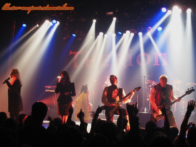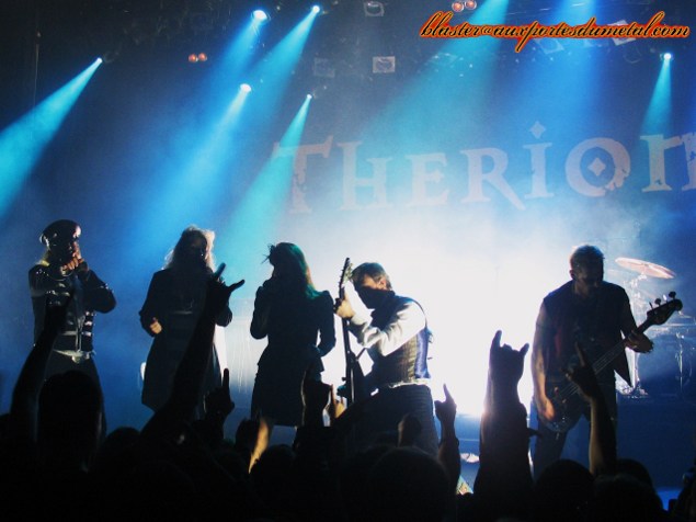 En 2007, Therion avait déjà fait une tournée anniversaire qui passait par la France. Il y a deux ans de cela, le groupe était passé à l'Elysée Montmartre à l'occasion de la sortie de Sitra Ahra. Alors, lorsque le groupe a annoncé une nouvelle tournée, mais cette fois-ci à l'occasion des vingt-cinq ans du groupe, le public y a peut-être vu une redite de la tournée évènement qui avait eu lieu cinq ans plus tôt. C'est du moins l'une des raisons que l'on peut avancer au fait que la date ne soit pas complète. A moins que les deux premières parties, Elyose et Antalgia n'aient pas aidé à remplir la salle comme c'est souvent le cas, les groupes n'étant assez connus du public ? Ou alors le passage de Soulfly le même soir dans une autre salle parisienne ? Ou encore parce que le groupe, généreux, ne se contente pas d'un seul passage à Paris et se promène de-ci, de-là en France ? Pourtant, un mois avant le premier octobre, Christofer Johnsson a fait une annonce qui aurait pu ébranler les fans et faire de cette date, mais aussi de la tournée, un évènement à guichets fermés. En effet, la tournée "Flowers of Evil" est la dernière que commet le groupe avant un nombre d'années indéfini, Therion prenant un autre virage, démarré avec l'album en vente lors de la tournée : Les Fleurs Du Mal. Dernière occasion de voir Therion avant longtemps, ce n'était donc pas une occasion à manquer. Après deux premières parties pas très emballantes, notamment à cause d'un son assez mauvais (le son du micro de la chanteuse d'Elyose étant particulièrement à remettre en cause !), Therion se montre enfin pour le plus grand plaisir du public qui est chaud-bouillant ! Parfois même un peu trop : des "hey, hey" placés sur des passages softs dans la soirée, un emballement qui forcera Thomas Vikström à accélérer son rythme lorsqu'il appelle un public qui ne sait pas ce qu'est le rythme à taper dans les mains, mais qui reprendra en choeur les riffs de Son Of The Sun jusqu'à The Blood Of Kingu en passant par Vanaheim. Soit un public très présent qui répond positivement à toute la setlist ou presque. Le ton est donné dès le début du concert avec O Fortuna en guise d'intro, ce soir il y a du niveau vocal, Thomas et Lori Lewis sont dans la place ! Un nouvel album sur le point de sortir oblige (le 19 octobre), on a droit à quelques titres, dont Poupée de Cire, Poupée de Son. En en ayant fait un titre énergique, qui en plus de cela est connu par une grande partie, voire la totalité du public, le titre ne fait pas tâche et est même repris par l'assemblée. On assistera à la première petite mise en scène de la soirée, Thomas et sa fille Linnéa - qui a rejoint le groupe l'an dernier - retire la veste de Lori, qu'elle remettra bien vite après, le Bataclan n'étant, contrairement à son habitude, pas un sauna. On regrettera d'ailleurs cette mise en scène un peu timide, trop absente. Bien que Thomas se fasse vampire sur The Khlysti Evangelist, qu'il joue le rôle d'un homme un peu hautain, fier et regardant sur tout, bien qu'il y ait des déplacements un peu hagards, que Lori joue avec le batteur, il manque de la folie. C'est ce qu'apportait le personnage de Snowy Shaw, qui au MFVF l'an dernier s'était présenté sur scène avec un livre, avait enchaîné Linnéa à une chaise, etc. Cependant, la jolie Johana Naila rejoindra Therion sur trois chansons pour de la danse orientale et mettre un peu d'animation sur scène. Celle qui officie aux côtés d'Orphaned Land se livre à un exercice plus ou moins apprécié. En effet, de plus en plus de groupes font appel à des danseuses du ventre et parfois pour pas grand-chose (Kamelot en tête), mais avec Therion, cela colle plutôt bien à cette envie de mise en scène, et même à certains de leurs titres. Le public se prend des claques à chaque chanson, car chanter juste sur un album, c'est presque à la portée de tout le monde et si ce n'est pas le cas on trafique ta jolie voix. Mais sur scène, c'est une autre paire de manche, et ainsi des chanteurs déçoivent. Ici, il n'en est rien, on est même admiratif quand on les entend chanter, à se demander comment ils font pour atteindre certaines notes (oui, d'accord, ils ont une très bonne technique, mais ça n'empêche pas l'admiration). Lori donnera sûrement le plus de frissons au public qui ne peut s'habituer à ce genre de prouesses vocales (le solo de Son Of The Staves Of Times étant à couper le souffle). Thomas, qui se voit "contraint" d'assurer le rôle d'un deuxième chanteur n'est pas en reste et se montre à la hauteur de la tâche qui lui incombe, allant de notes graves à un chant plus lyrique en passant par des cris. Il assure même à la flûte traversière sur deux titres. Quant à la nouvelle recrue, Linnéa, elle va chercher le public et se montre sous un jour dynamique, mais elle n'emballera pas l'audience, ses capacités vocales étant moindres, et étant moins exubérante que Katarina Lilja qu'elle remplace. Cependant, avec le départ de Snowy, qui aurait assuré les appels au public si elle n'avait pas été là ? On voit mal Lori et Thomas le faire en plus du reste. Les coups de mou du public apparaîtront sur J'ai Le Mal de Toi qui suit un The Flight Of The Lord Of Flies assez longuet et peu entraînant et sur Une Fleur Dans Le Coeur, introduit en français par Linnéa. Le fait que ce soit des reprises françaises a peut-être joué, cette décision ayant été assez décriée (et ce n'est certainement pas fini). Pourtant, une fois de plus, on a la démonstration du talent fou dont Therion bénéficie actuellement. Christofer parle d'ailleurs de cet album à deux reprises dans la soirée : la première pour nous expliquer la vie de Betty Mars, chanteuse originelle de J'ai Le Mal De Toi (que les choses soient claires, ce n'est pas de François Feldman, il faut arrêter avec ça !), en disant aussi que si les Français ne comprennent pas sa démar