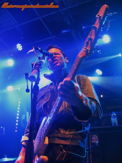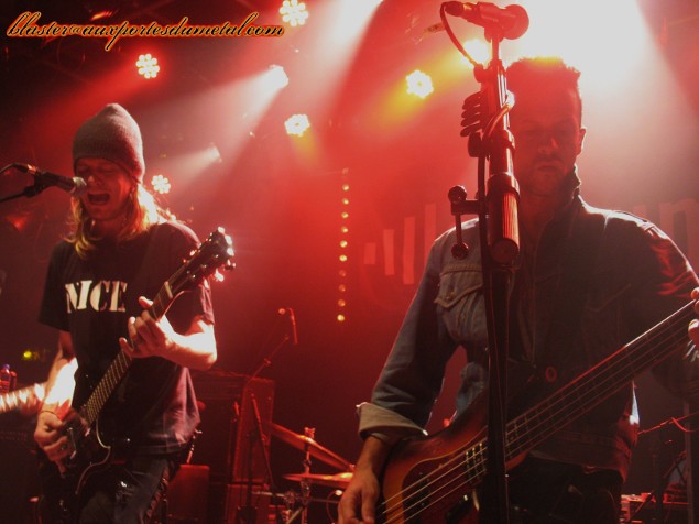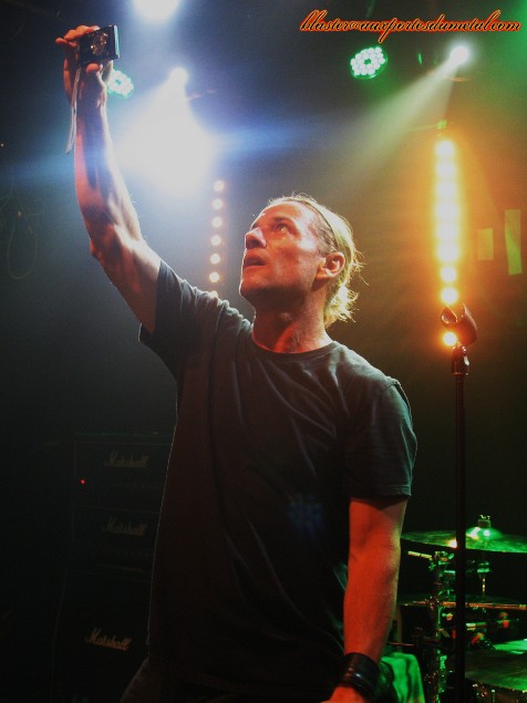Il est plus de vingt-deux heures quand le moment tant attendu (depuis plus de quinze ans !) arrive enfin, ça y est, les Ugly Kid Joe sont de retour ! Mais est-ce vraiment bien le groupe qui investit la scène du Forum ? J'ai un moment d'hésitation... Derrière la batterie s'installe une femme et non Shannon Larkin. Bizarre... Et puis arrive un guitariste, mais je ne reconnais pas Dave Fortman... Ah par contre, il s'agit bien de Cordell Crockett à la basse, le doute n'est donc plus permis. Klaus Eichstadt les rejoint et tout ce beau monde attaque le set par l'intro instrumentale de l'album Menace To Sobriety. Le son est meilleur que pour Puddle Of Mudd mais malheureusement, pour l'instant, la basse est trop en avant et se fait plus entendre que les guitares. Une fois cette petite mise en jambes achevée, Whitfield Crane arrive et c'est parti pour un V.I.P. revigorant ! L'entrée en matière est donc heavy et ce n'est certainement pas God, balancée dans la foulée, qui viendra contredire ce constat. Le public est chaud, le son s'améliore, Yael frappe ses fûts avec force et conviction, le groupe est souriant et l'ambiance bien détendue, Whitfield Crane est très sympathique et ne manque pas de jouer avec le public... tout se passe plutôt bien, et après un Dialogue grungy (assez raccord avec le groupe de première partie pour le coup) déboulent enfin les tubes du premier album, le fameux America's Least Wanted. C'est à Neighbor que revient le privilège de nous ramener vingt ans en arrière pour la première fois de la soirée... et c'est bon ! Mieux que ça, même. Histoire de battre le fer pendant qu'il est chaud, les Californiens enchaînent avec un Panhandlin' Prince très convaincant. Si les fans veulent entendre des hits de la vieille époque, ils ne vont pas être déçus car les Ugly Kid Joe joueront pas moins de sept morceaux issus de leur premier album ce soir. Voilà un groupe qui sait faire plaisir à ses supporters... et qui se fait visiblement plaisir aussi.